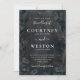 Este convite de casamento escuro, não tradicional, apresenta rosas de carvão moderno acentuados com poeira de ouro e folhas de prata. Um fundo escuro sujo torna o texto branco do convite realmente pop. Personalize facilmente a design de tipografia chic com seus nomes e detalhes de casamento. Encontre uma carta de casamento na nossa coleção de casamento Dark e Moody Floral.