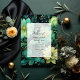 Convites Casamento Floral Negro, Dourado e Esmeralda