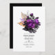 Convite de casamento floral preto, roxo e laranja.