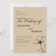 Este elegante, simples e minimalista convite para o casamento apresenta um texto preto moderno e uma flor com um delicado e neutro bege castanho quente ao fundo.