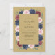 Rosas profundas em azul-marinho e burgundy ancoram uma fronteira exuberante contra um fundo dourado impressionante. Acentos de rosa suave e verde delicado adicionam um toque de romance à paleta sombria. Essa disposição botânica em aquarela evoca um senso de elegância formal, perfeita para um evento sofisticado de inverno ou outono.
