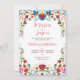 Este design de Invenção do Casamento Floral Otomi Mexicano, Colorido Fiesta, apresenta um fundo branco brilhante, enquadrado por elementos florais folclóricos vibrantes em tons ricos de vermelho, laranja, azul, verde e rosa. No centro de cima, dois pássaros coloridos se enfrentam, segurando um coração vermelho estilizado entre eles, simbolizando amor e celebração. A borda simétrica é cheia de flores brancas, folhas e espirais lúdicas, criando uma moldura viva e festiva perfeita para casamentos ou eventos culturais alegres.