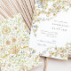 Este convite romântico de casamento abraça a elegância divertida da era Rococo, apresentando delicados florais pastéis, roldanas de ouro giratórias e florescimentos botânicos. O design inclui flores intricadamente ilustradas em tons de blush, lilás, azul-bebê e amarelo-macio, moldando o texto com movimentos graciosos e assimétricos. As costas mostram uma cor damasco floral coordenadora que adiciona riqueza e textura. Ideal para casamentos de conto de fadas, cerimônias de jardim, ou casais desenhados para encanto histórico e arte romântica. Personalize este convite para criar um anúncio de casamento gracioso e inesquecível.