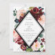 Moldura floral de cor d'água elegante, convite para casamento. O cartão apresenta lindas flores pintadas de jardim em tons de burgundy, blush e marinho, acentuadas com folhagem verde e sotaques florais de arte esboçados. Estilo simples de design de tipografia de classe e coordenação de cores azuis de marinho.