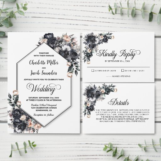 Black Floral Geometric Wedding Invitation SuiteCriado por Merry D