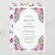 Convite Para Casamento Floral De Púrpura De Aquarela. Apresentando um elegante roteiro de caligrafia e um elegante trabalho de arte de cor d'água pintado à mão em lavanda macia, rosa pincelado, arroto profundo e roxo vibrante, adornada com flores silvestres, rosas e verde elegante. Perfeito para primavera, verão e casamentos outono, cada item nesta coleção sussurra de amor, encantamento e romance de eterno definindo o palco para sua celebração inesquecível. Que a beleza da natureza e o charme da elegância vintage adornem seu dia especial com nossa coleção cativante.