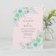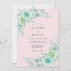 Flores delicadas em aquarela em tons suaves de menta e aqua se misturam com folhagem verdejante, criando uma atmosfera etérea e romântica. Este design evoca uma elegância fresca e natural, perfeita para uma celebração caprichosa. A paleta de cores suaves sugere um clima sereno e edificante.