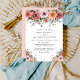 Aprecie seus hóspedes com este convite de casamento cor-de-rosa, pincelado e espantoso, com um belo campo de aquarelas de flores no topo e buquês de canto na parte inferior, numa delicada mistura de, em branco, rosa, marfim, marfim, pêssego, azul de menta, cinzas e tons de sábio. Detalhes da caligrafia moderna. O cartão está de volta em um tom romântico de pêssego. Parte do nosso "Ereal" na coleção de casamentos e eventos do Blush Peach.