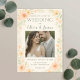 Celebre o seu dia especial com este elegante e romântico design floral com rosas de pêssego moles e verde-aquarela. Perfeito para casais que adoram charme clássico com uma reviravolta moderna, este design enquadra lindamente sua foto favorita e inclui texto personalizável para data, hora e local. Uma escolha eterno para casamentos em qualquer estação.