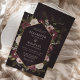 Perfeito para elegantes casamentos noturnos formais, e temas de outono ou inverno, este design de convite romântico para o casamento apresenta florais ensolarados escuros com uma estrutura geométrica, e um fundo extremamente escuro, quase negro e burgundy. Encontre o resto do pacote de convites de casamento e mais produtos correspondentes na coleção, ou envie-me através do Zazzle Chat para obter produtos adicionais ou ajustes de design.