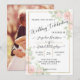 "Convite de Casamento Floral Rosa com Água Dourada Elegante Letra com Foto." Design elegante e sofisticado com elementos dourados, aglomerados florais pintados com água e sua foto de noivado no verso. Dourado tridimensional sutilmente renderizado com toques delicados de brilho na borda e nas linhas divisórias é combinado com caligrafia manuscrita. Um layout de estilo tipográfico com divisor de e comercial foi criado pela artista e designer internacionalmente licenciada, Audrey Jeanne Roberts. Direitos Autorais.