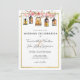 Os Convites para Casamento floral Elegante cor-de-rosa e ouro-rosa apresentam rosa de-água ouro, coral, pêssego e flores cor-de-rosa e lanternas rústicas sobre fundo rosa de ouro. Fácil de personalizar com suas próprias informações de casamento, e a cor de fundo também é personalizável.