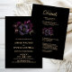 Faça uma declaração com o nosso convite de casamento preto, tudo em um, com um motivo floral roxo e rosa. Este design dá o tom para uma celebração inesquecível. O texto personalizável permite adicionar sem esforço os nomes da noiva e do noivo, a data do casamento e os detalhes necessários de sua celebração. Projetado para o casal econômico, a localização do local de recepção, a solicitação de resposta RSVP, os detalhes de acomodação e qualquer outra informação que seus convidados possam exigir podem ser incluídos no verso deste convite, economizando dinheiro em papelaria extra. Vários tipos de papel e estilos de canto estão disponíveis para seus convites exclusivos, juntamente com a opção de download.