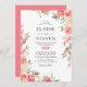 Convites elegantes para o casamento de salmão, com um clássico fundo branco-chic que pode ser mudado para qualquer cor, um display de canto floral cor-de-água rosa, e um modelo moderno de celebração de casamento. Estes convites oferecem um visual sofisticado com opções flexíveis de cor e flores artísticas para uma celebração memorável. Faça o seu casamento se destacar com este design chic.