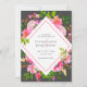 Seus convidados serão varridos com a beleza dessas flores de jardim de aquarelas. Esta design apresenta uma cascata de flores acentuadas pela elegante tipografia personalizada. O verso apresenta uma cor rosa pincelada e suave. Adicione suas informações de casamento para completar a aparência.