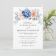 Marinho azul-claro, cor-de-rosa, convite para casamento floral, com buquê elegante de azul marinho, azul real, branco, rosa de jardim vermelho, hydrangea e folhas verdes de eucalipto sábio. Entre em contato comigo para obter ajuda sobre a personalização ou se você precisar de outro produto com este design.