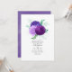 Convite de casamento floral de aquarela com sotaques de púrpura, lilás e ultravioleta personalizáveis para suas especificidades.