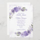 Convite de casamento com um belo design floral roxo.