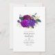 Convite de casamento floral violeta e roxo com sotaques de ouro personalizáveis para seus detalhes de evento. Ideal para qualquer tema ou casamento de jardim.
