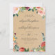 Convites florais russos com flores de aquarela em tons de burgundy e rosa pincel com belos verdes contra fundo Kraft. Perfeito para o país, para o exterior, para o jardim, primavera ou casamentos de verão.