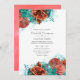 Convites Casamento Floral Russo de Coral Turquesa e Vivo
