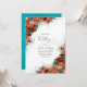 Rosas de cor d'água turquesa e coral e convites iridescentes para casamento de folhagem tropical com tipografia tradicional desenhada para ser rápida e facilmente personalizada de acordo com os detalhes do seu evento.