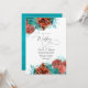 Rosas de cor d'água turquesa e coral e convites iridescentes para casamento de folhagem com tipografia de letra de tenda desenhada para ser rápida e facilmente personalizada de acordo com as especificações do seu evento.