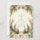Uma design de casamento russa em floresta que inclui galhadas de veados, rosas de pincel suave, samambaias e verde. Os elementos naturais e os tons de terra criam uma atmosfera romântica, mas robusta, perfeita para boho, floresta ou casamentos temáticos no país.
