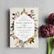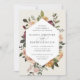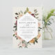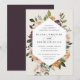 Um belo convite floral para o casamento em outono, com seus nomes em letras de escrita caligráfica, aninhado dentro a fronteira geométrica de flores de aquarelas e botânicos em tons de terra mutada de burgundy marsala, blush, marfim e sábio verde. Personalize com seus detalhes de casamento embaixo.