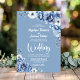 Convide seus amigos e entes queridos para o seu casamento para testemunhar e celebrar o início de sua jornada ao longo da vida com este convite de casamento floral azul rústico. O texto personalizável permite adicionar sem esforço os nomes da noiva e do noivo, a data do casamento e os detalhes necessários de sua celebração. Uma variedade de tipos de papel e estilos de canto estão disponíveis para seus convites exclusivos, juntamente com a opção de download se você preferir um formato digital.