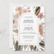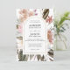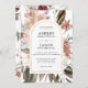 Planeje o seu casamento de sonho com este maravilhoso design de convite floral para casamento rústico de boho aquoso. Ele tem uma paleta de cores neutras em bege, verde, pêssego, e tons de rosa e terracota. Um belo quadro arqueado com sotaque dourado adiciona elegância ao design. A parte de trás do convite tem um adorável padrão floral correspondente com elementos florais espalhados pelo design. Personalize o modelo de texto com os detalhes do casamento.