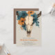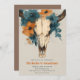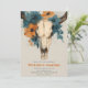 Convide seus hóspedes em estilo com este convite de casamento russo do boho com um crânio de vaca detalhado, enfeitado com laranja queimado e flores de chá. Misturando charme ocidental com elegância floral, é perfeito para deserto, campo ou casamentos ao ar livre. Totalmente personalizável com seus nomes e detalhes de eventos, este design dá o tom para uma celebração ousada e bonita.