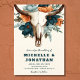Celebre o seu amor com este convite de casamento rude do boho, que inclui uma corajosa peça central de crânio de vaca rodeada de ricas chuvas escuras e flores laranja queimadas. Perfeito para casamentos ocidentais, desérticos ou ao ar livre, esta design captura elegância santa e charme livre. Personalize as fontes e o texto para corresponder à sua visão única de uma celebração inesquecível.