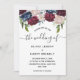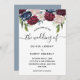 Elegantes convites para casamentos florais de aquarelas quicas com lindas flores rústicas de campo em rosa-pincel, burgundy e azul-marinho. A parte de trás do cartão está em azul empoeirado moderno. Adicione facilmente seus detalhes de casamento personalizados.
