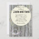 Placas de madeira com cinzas russas e intempéries são o pano de fundo deste charmoso convite de casamento. Uma coroa decorativa de flores, corações e rendas decoram o fundo da carta e uma esfera decorativa redonda com folhas e flores são o centro da carta com todas as informações. Chic do país no seu melhor.