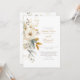 Convite para casamento russo elegante de flores silvestres boho apresentando um spray de delicadas flores silvestres e folhagem com guião e tipografia serif. As costas incluem uma dispersão das flores silvestres contra um fundo de terracota leve. Terracotta, creme, e matizes castanhos leves. Perfeito para primavera, verão ou casamentos outono. Matizes bonito de água. A tipografia é uma mistura de marrom-claro-ouro e cinza preto.