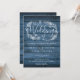 Um convite de casamento rústico com uma delicada grinalda floral rústica desenhada à mão com folhagem botânica em tipografia estilosa, sobre um fundo de madeira rústica azul. Personalize com as informações do seu dia especial de casamento. Criado por Thisisnotme