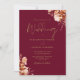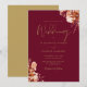 Este convite de casamento elegante com flores rústicas pode ser personalizado com suas informações em tipografia dourada sofisticada em um fundo borgonha. Criado por Thisisnotme©