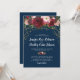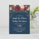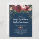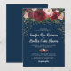 Convites de casamento Elegant Bloom com um fundo azul-marinho elegante que pode ser alterado para qualquer cor, uma variedade de flores aquareladas em vermelho marsala, burgundy e rosa beijado, e um modelo de casamento moderno.