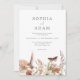 Simples convite de casamento com um estilo minimalista elegante com design floral de flor selvagem botânica.