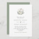 Um simples convite para o casamento outono que inclui uma abóbora branca a aquarela decorada com flores e folhas verdes brancas e sábias. Personalize com seus detalhes em verde-claro e cinza. O inverso está em verde-senso sólido.