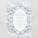 Ponha o tom para o seu dia especial com este charmoso convite de casamento personalizado com um quadro floral azul empoeirado desenhado à mão num estilo romântico de arte popular. Delicada, artística e lindamente simples, o fundo branco suave faz a intrincada fronteira floral realmente brilhar, oferecendo um olhar elegante, mas convidativo, que combina com tudo, de uma celebração acolhedora a brunch a um fim de semana de casamento de cheio. Personalize facilmente este convite editável online com seus nomes e detalhes de casamento. Você pode até mudar a cor de fundo ou ajustar a matiz do design floral para combinar perfeitamente com o seu tema de casamento. Escolha o formato que melhor atenda às suas necessidades de planejamento: - Faça com que ele seja impresso profissionalmente em papel premium para manter o eterno - Ou faça o download instantâneo do arquivo digital de alta resolução e o compartilhe por e-mail ou texto, perfeito para o planejamento de última hora ou celebrações ecologicamente conscientes Elegante, moderno e fácil de personalizar, este convite de casamento faz uma primeira impressão sincera que seus convidados adorarão.