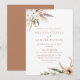 Cumprimente o seu evento de casamento de destino com este simples convite para casamento floral. O design apresenta creme de aquarela, flores brancas, castanhas e grama-pampas verde em buquês elegantes.