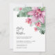 Convite de Casamento Floral Tropical com Folhas de Palmeira Modernas. Com acentos botânicos rosa e verde contrastados com letras pretas e brancas. Um design tropical que abraça a beleza tranquila da natureza misturada com uma pitada de diversão que certamente ajudará a se divertir. Folhas de bananeira ou palmeira tropicais verdes calmantes, ao lado de flores de orquídea roxo-rosa suaves. Fontes serifadas aprimoradas por uma tipografia moderna manuscrita ou de roteiro, essa impressão encantadora irradia charme e sofisticação. Esse design versátil traz um senso de paraíso tropical para qualquer ambiente ou ocasião especial, tornando-o perfeito para um casamento de destino ou apenas quando você deseja adicionar um toque tropical.