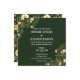 Um convite para o casamento floral verde escuro, com uma corda decorativa de ouro girando e flores brancas, folhas e vinhas. Ideal para um casamento no jardim, este convite contém texto na frente que pode ser personalizado com os seus próprios detalhes do dia do casamento, e um padrão floral sólido no verso.