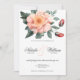 Chic do campo branco, rosa-pincelado, vermelho e verde poeirento convite para o casamento floral. Este belo convite de buquê de flor de água é perfeito para qualquer garota de vidro elegante e sofisticada. Este design é ideal para um evento de tendências e na moda. Personalize este design com sua própria mensagem e informações personalizadas. Todas as designs são impressas.
