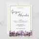 Quadro elegante de ouro branco-chic com convite para casamento floral rosa, roxo, lavanda e verde. Um convite floral de cor aquática country é perfeito para qualquer garota de vidro clássica e sofisticada. Este design é ideal para um evento de tendências e na moda. Personalize este design com sua própria mensagem e informações personalizadas. Todas as designs são impressas.