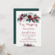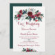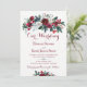 Buquê floral de rosas de burgundy vermelha e de pénia branca com ramos de abeto verde-pinheiro e modelo de convite para o casamento de folhagem com um texto de roteiro moderno e moderno rico. Observe que a cor de fundo na frente e no verso é editável. Para alterar a cor e também as fontes e a cor do texto, selecione a opção "personalizar mais". - O convite é ideal para casamentos florais de Natal de inverno.