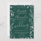 Casamento chic de folha de prata com guião floral com uma elegante mão prateada desenhada floral, folha, galhos num verde esmeralda editável com uma caligrafia elegante e moderna.