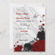 cinzas de flores negras e vermelhas elegantes folhas convite para casamento Os detalhes da brilha são simulados